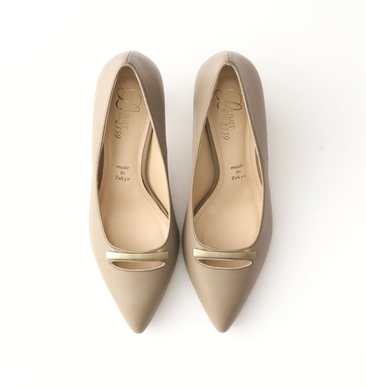 プレーンパンプスにワンアクセントプレートが足元を飾ります。
